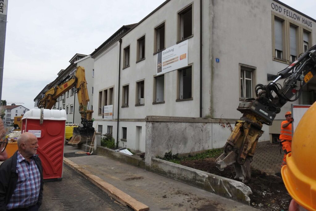 Am Donnerstag, 23. Mai 2024, um 08:30 Uhr fuhren die ganz grossen Bagger auf und begannen mit dem Rückbau des markanten, geschichtsträchtigen Gebäudes der Basler Loge der Odd Fellows. In den nächsten knapp zwei Jahren entsteht an der Grosspeterstrasse 5, an prominenter Lage, der neue Sitz der Loge mit zusätzlich 28 modernsten Wohnungen im für jedermann erschwinglichen Preissegment.